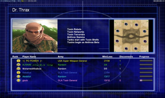 | NameAbdalluh | Side | Color | Team1 | Starting Position3 | Buildings Built1 | Buildings Lost0 | Buildings Destroyed0 | Units Built2 | Units Lost0 | Units Destroyed0 | Money Earned0 | OutcomeLost |