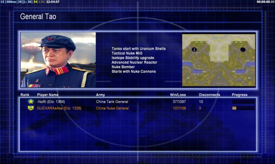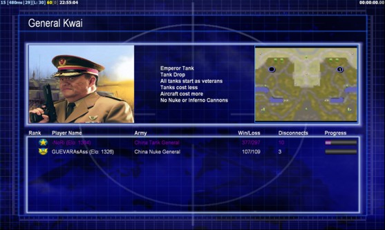 | Name | Side | Color | Team | Starting Position | Buildings Built | Buildings Lost | Buildings Destroyed | Units Built | Units Lost | Units Destroyed | Money Earned | Outcome |
