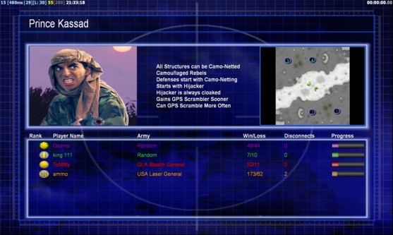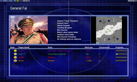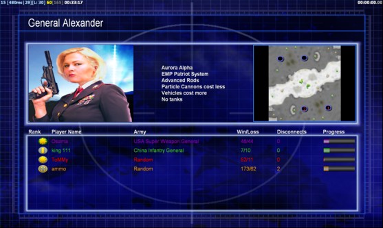 | Nameking 111 | Side | Color | Team0 | Starting Position1 | Buildings Built6 | Buildings Lost0 | Buildings Destroyed0 | Units Built16 | Units Lost0 | Units Destroyed8 | Money Earned11400 | OutcomeLost |