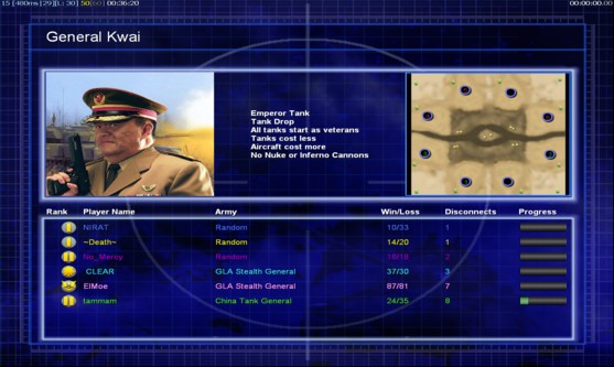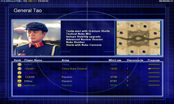 | NameNIRAT | Side | Color | Team1 | Starting Position6 | Buildings Built6 | Buildings Lost0 | Buildings Destroyed0 | Units Built8 | Units Lost0 | Units Destroyed0 | Money Earned900 | OutcomeLost |